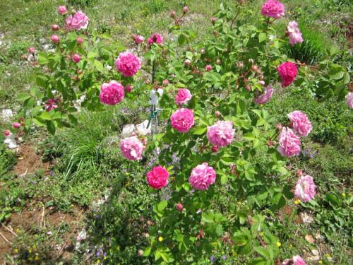 розовые кусты перед домиками